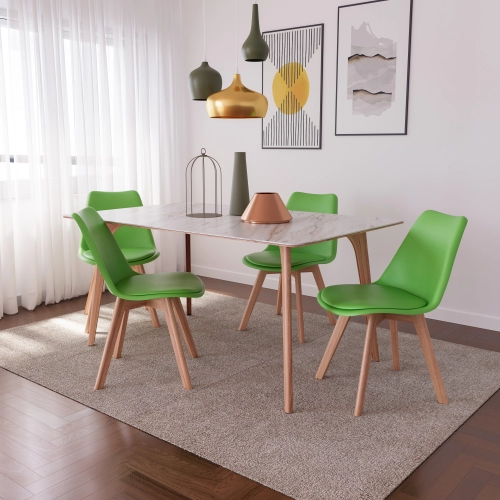 Set Di 4 Sedie Per Sala Da Pranzo Ufficio Con Gambe In Faggio Legno Massello Massiccio Stile Nordico Scandinavo Comoda Seduta Imbottita Ideale Per Soggiorno Sala Riunione (Verde)